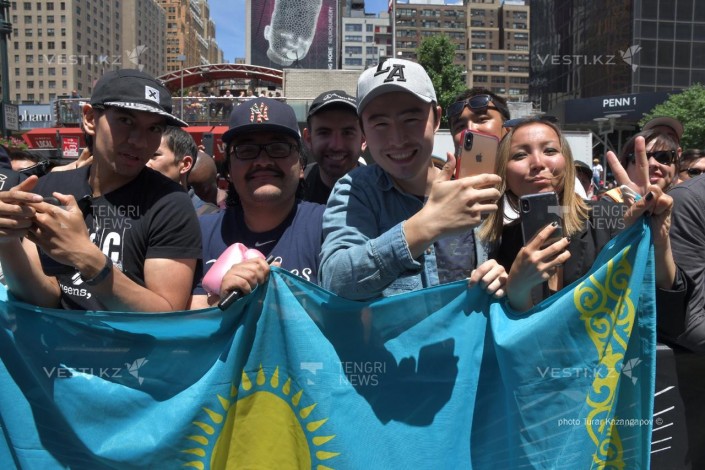 Он пришел с казахстанским флагом на открытую тренировку GGG на арене Madison Square Garden, после чего ему и еще одной болельщице подарили билеты.