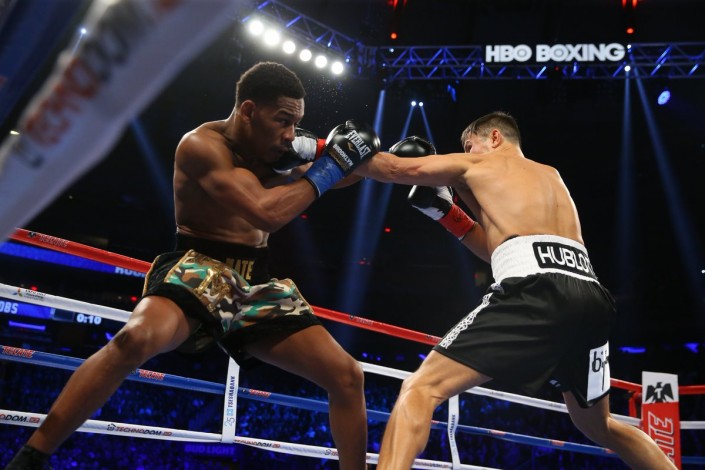 На арене Madison Square Garden в Нью-Йорке проходит бой между казахстанцем Геннадием Головкиным и американцем Дэниэлом Джейкобсом, передает корреспондент Vesti.kz.