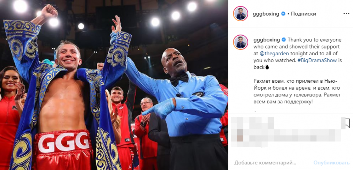 "Рахмет всем, кто прилетел в Нью-Йорк и болел на арене, и всем, кто смотрел дома у телевизора. Рахмет всем вам за поддержку!" - написал спортсмен на своей странице в Instagram.