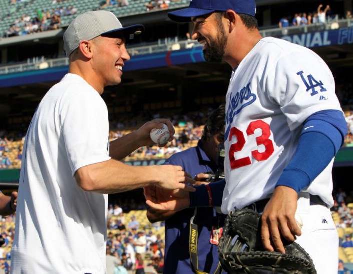 Торжественное вбрасывание состоялось перед началом матча между командами "Лос-Анджелес Доджерс" и "Сан-Франциско" в Лос-Анджелесе.