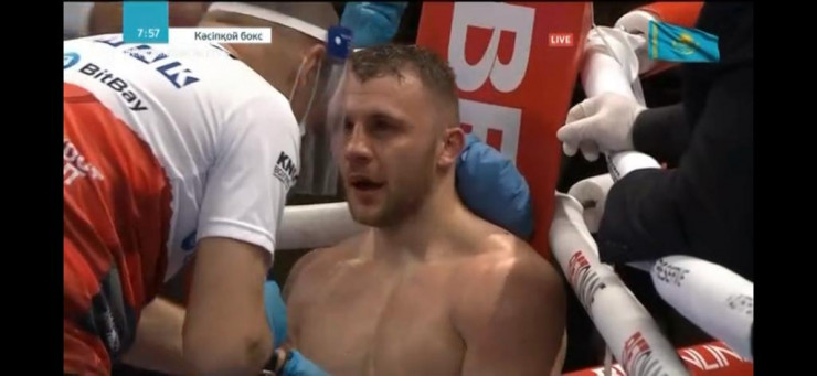 Комментаторы "просят" казахстанского боксера закончить все в этом раунде. Видимо, жалеют польского боксера