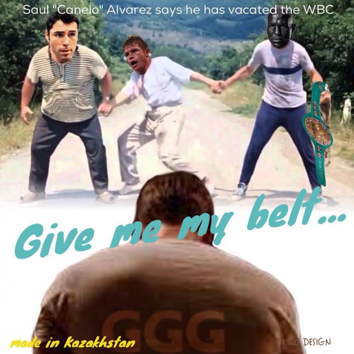 Между тем любители бокса по всему миру отреагировали на отказ "Канело" от пояса множеством мемов и смешных коллажей в соцсетях, считая, что настоящий чемпион может лишиться пояса только в поединке. Спортивный портал Vesti.kz сделал целую подборку таких изображений.