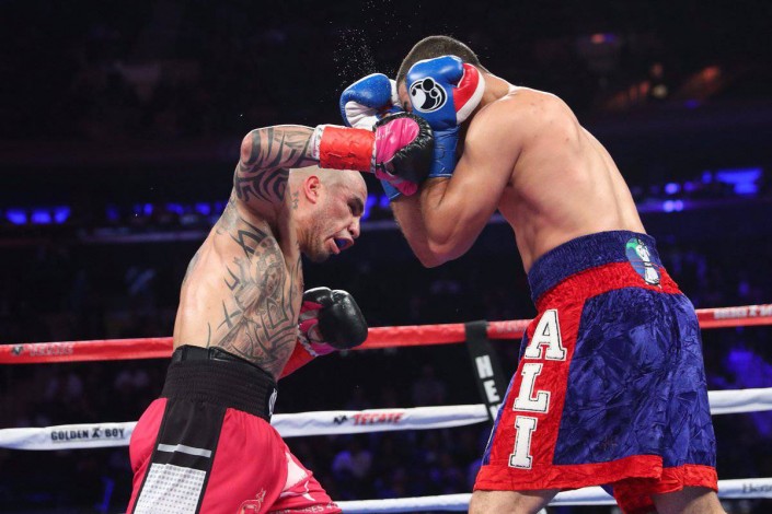 Нашел себя Котто в середине пятого раунда. Пуэрториканец сумел точно сработать, записав в свой актив несколько хороших ударов. В середине поединка чемпион мира и вовсе потряс соперника. Али пришлось клинчевать, чтобы прийти в себя.