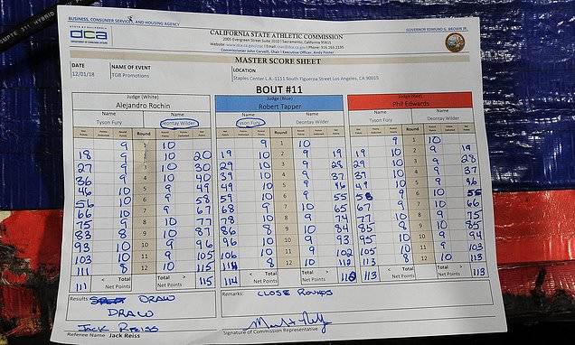 Напомним, судьи зафиксировали ничью раздельным решением. Вердикт: 115:111 (Уайлдер), 114:110 (Фьюри) и 114:114 (ничья).