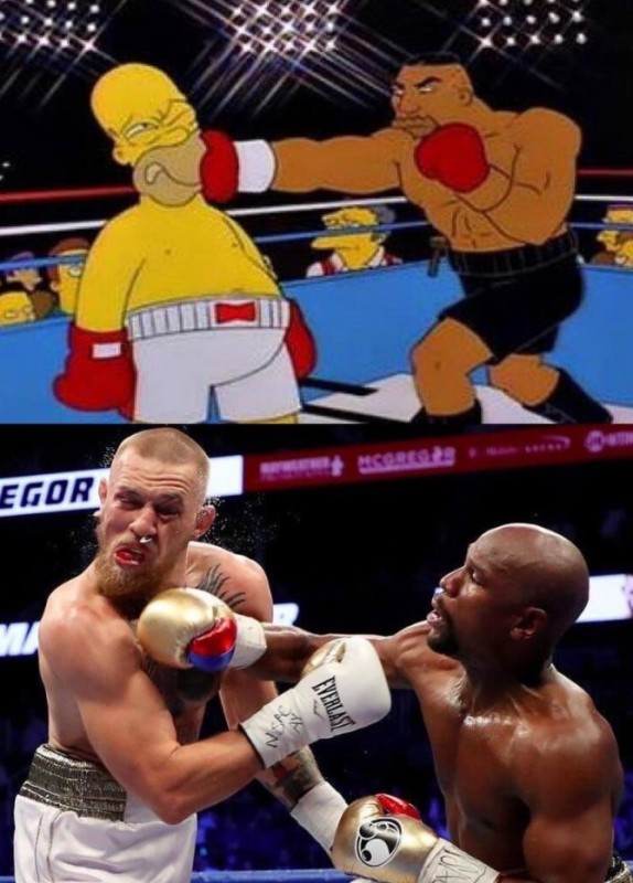 Фанаты бокса по всему миру обсуждают "бой века" между непобедимым боксером Флойдом Мейвезером и звездой смешанных единоборств Конором МакГрегором. Многие пользователи восприняли широко разрекламированный поединок с юмором. Twitter и Instagram заполонили мемы и фотожабы, касающиеся эпичной битвы, вокруг которой было столько шумихи.