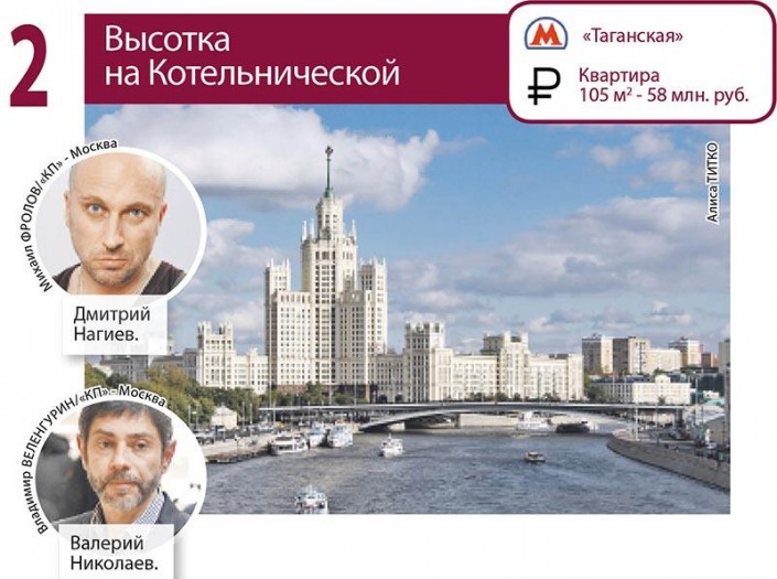 В знаменитой высотке на Котельнической набережной еще в советские времена жила элита: Галина Уланова, Александр Твардовский, Василий Аксенов, Андрей Вознесенский, Фаина Раневская, Людмила Зыкина. Сейчас квартиры в высотке есть у Вилли Токарева, Дмитрия Нагиева, Андрея Кайкова, Валерия Николаева, Александра Ширвиндта.