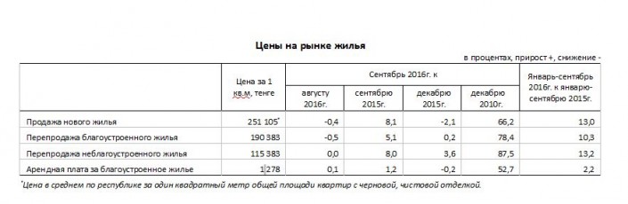 Так, по их информации, в сентябре по сравнению с предыдущим месяцем цены на продажу нового жилья снизились на 0,4 процента, перепродажи благоустроенного - на 0,5 процента, а на неблагоустроенное жилье остались без изменений. Арендная плата за благоустроенное жилье повысилась на 0,1 процента.