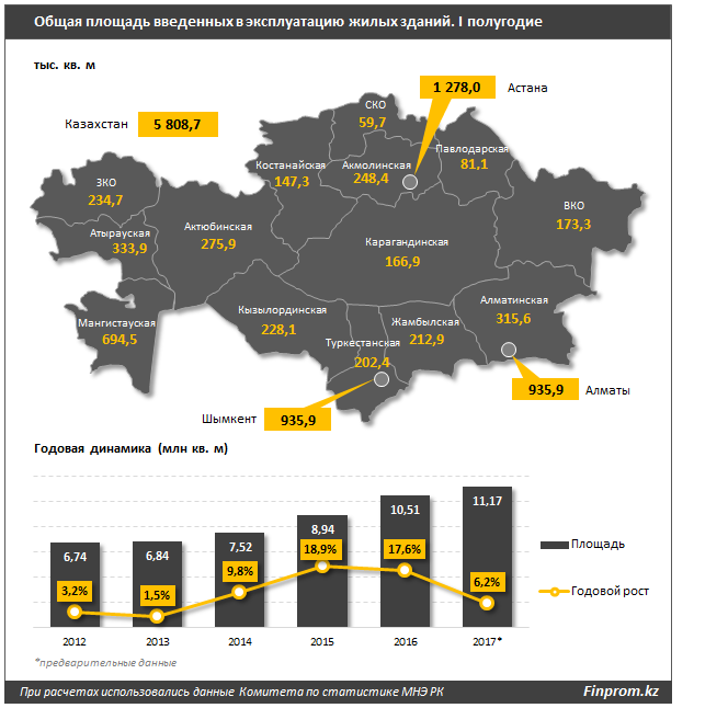 Более того, на одного казахстанца по итогам 2017 года приходится всего 21,6 квадратных метра жилья, в то время как стандарты ООН требуют минимум 30 квадратных метров на человека. При этом, если в городах на человека приходится сразу 24,2 квадратных метра, то в сельской местности - всего 18,2 квадрата по итогам прошлого года.