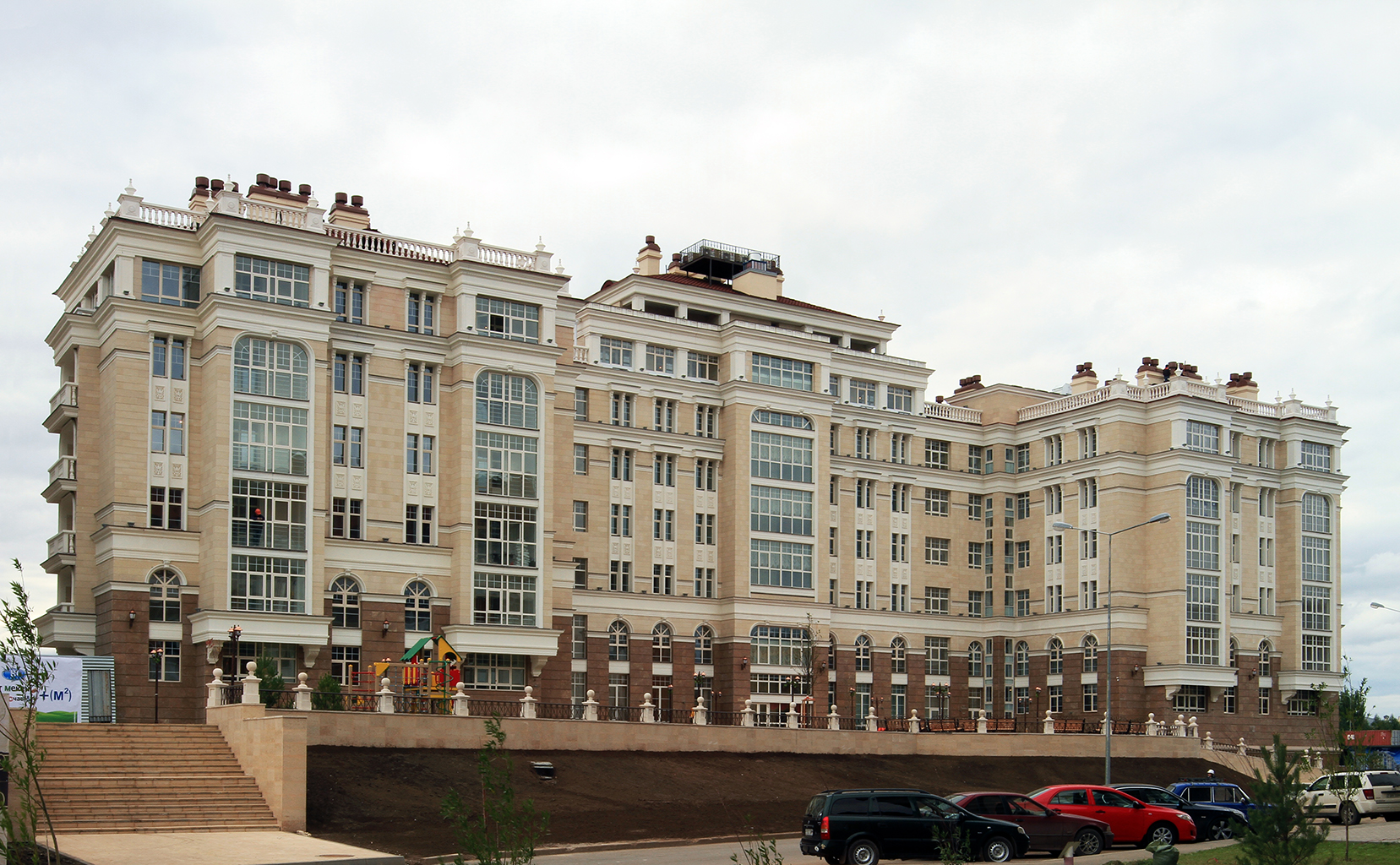 Далее по дороговизне следует жилой комплекс "Парижский квартал". Трехкомнатные квартиры в новостройках с черновой отделкой и площадью 170 квадратных метров продаются по 650 тысяч долларов. Добавим, что один квадратный метр в этом комплексе стоит от 3800 долларов (черновая отделка) до пяти тысяч долларов (с ремонтом). Жилой комплекс расположен на улице Шарля де Голля. По словам консультанта по недвижимости, в доме имеется бельгийская система "Умный дом", которая позволяет, находясь в любой точке мира, управлять домом, то есть подключать любые средства связи, включать или выключать освещение.