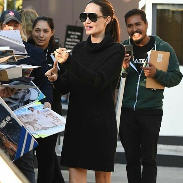 Голливудская актриса Анджелина Джоли вновь привлекла внимание поклонников и СМИ своей худобой. На днях звезда попала в объектив фотокамер, когда покидала встречу Гильдии режиссеров Америки. Джоли остановилась на оживленной улице и стала раздавать автографы. В этот момент ее и засняли папарацци, а снимки выложили в Instagram и другие соцсети.