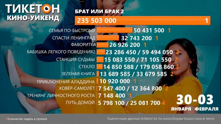 По информации сервиса Ticketon.kz, только за первые выходные комедия собрала более 230 миллионов тенге. Для сравнения, "Семья по-быстрому" с Марком Уолбергом за тот же срок заработала около 50 миллионов.