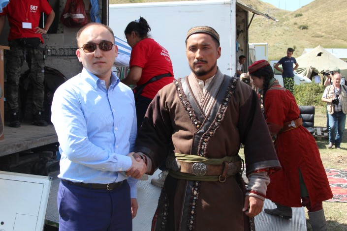 30 августа министр информации и коммуникаций РК Даурен Абаев прибыл на съемочную площадку, чтобы посмотреть ход работы и познакомиться с главными актерами картины, сообщает корреспондент Tengrinews.kz.