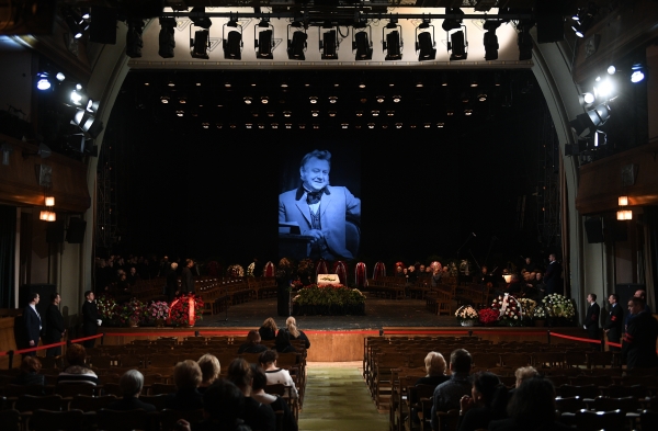 Торжественная панихида еще не началась, но с 9 утра по местному времени театр открыт для прощания.