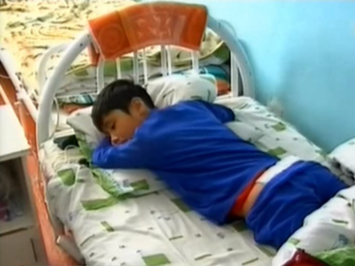 Восьмиклассник Диас Дауренбаев практически обездвижен. © astanatv.kz