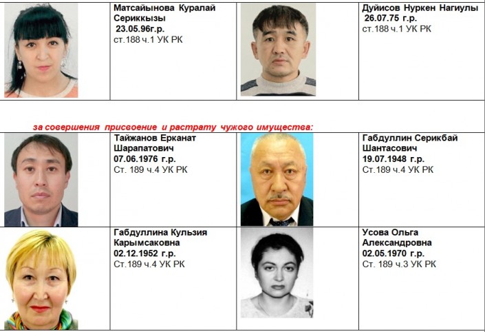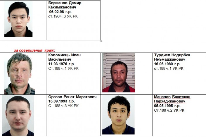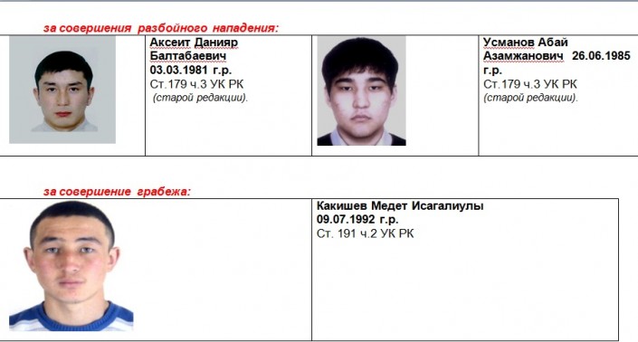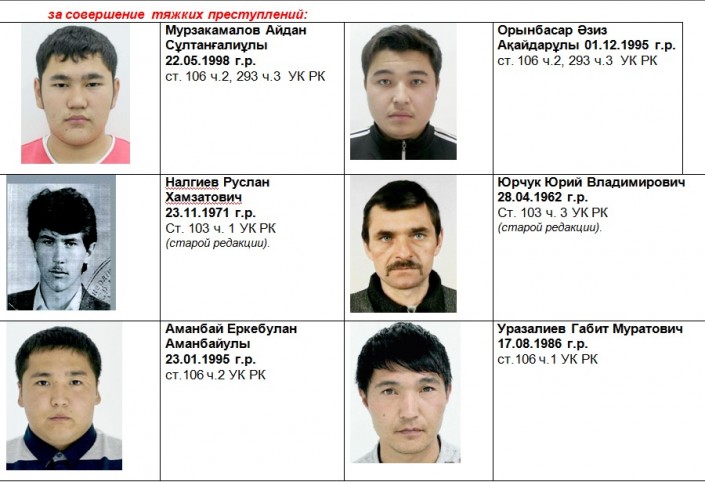"Управлением криминальной полиции Нур-Султана разыскиваются уголовные преступники. Если вы располагаете информацией по разыскиваемым лицам, просим сообщить по телефонам: 8 (7172) 71-60-10, отдел криминального розыска: 71-60-22, 8-778-638-88-70, 8-701-716-41-20 или 102. Анонимность гарантируется!" - говорится в сообщении.