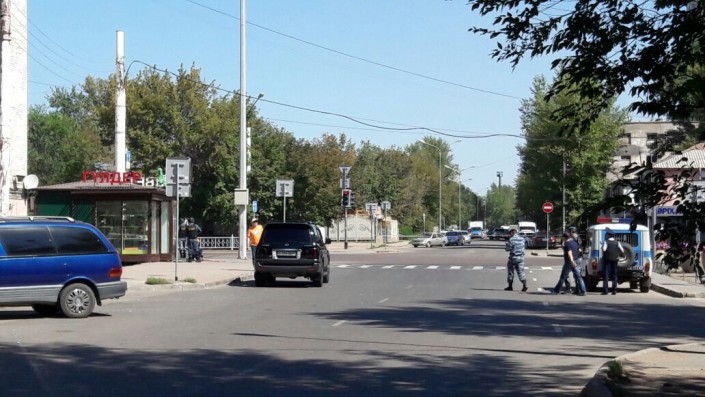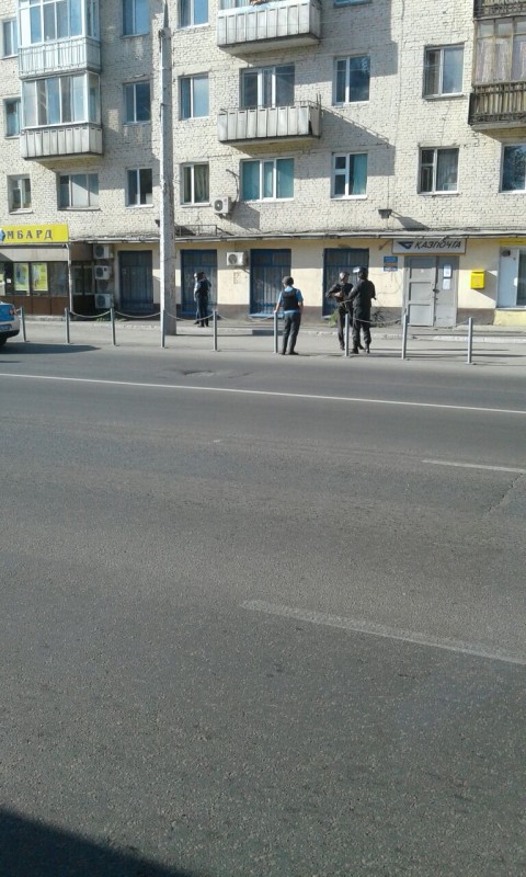 Грабитель оказался заблокирован в ломбарде Астаны вместе с двумя сотрудниками Фото очевидца.