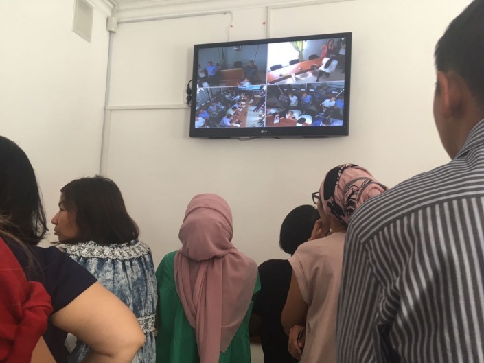 Во время оглашения приговора Еркина Избасара удалили из зала суда за нарушение порядка.
