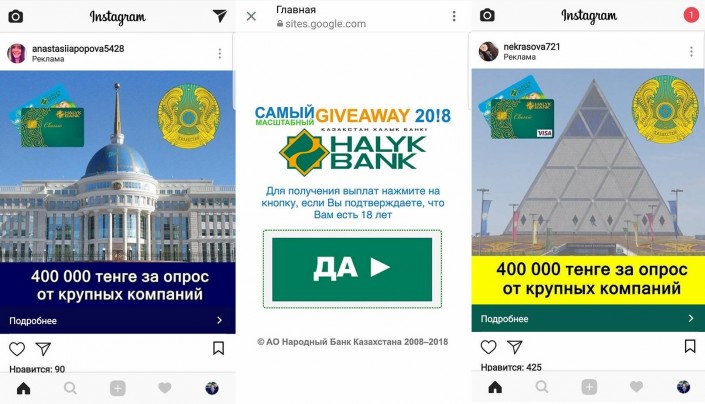 "В мошеннических объявлениях используются корпоративные цвета Halyk Bank, шрифты, логотипы, фотографии продуктов и сотрудников в униформе, фальшивые отзывы вымышленных лиц, контакты не существующей "службы поддержки клиентов". Не позволяйте кибер-мошенникам обмануть вас!" - призвали в банке.