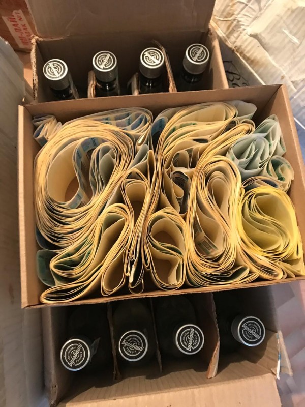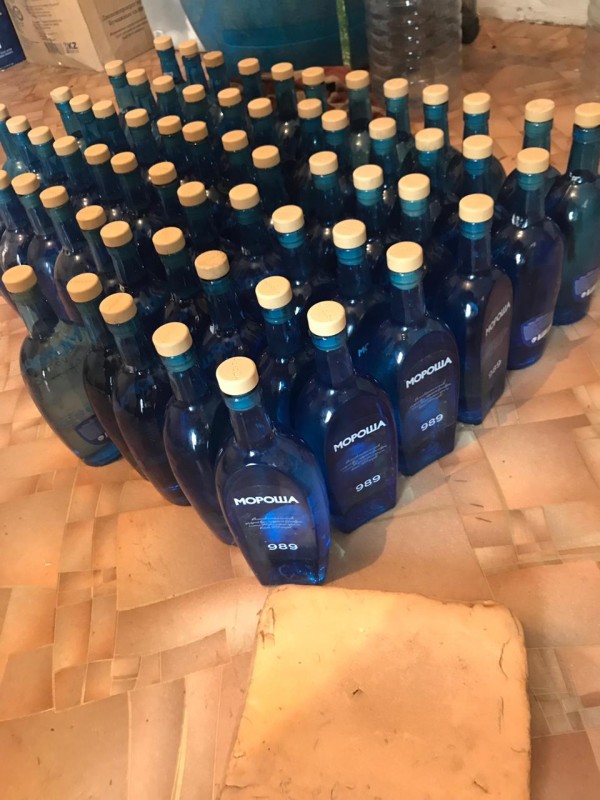 В цехе, как сообщается, нашли 800 бутылок следующих брендов: Absolut, "Хортица", "Воздух", "Мороша", "Бульбаш", "Царская", "Зерно". Также, по данным ведомства, изъяты акцизные марки сомнительного происхождения в количестве 2 100 штук, спирт в количестве 160 литров, пустые бутылки и крышки, а также 25-литровая бочка, предназначенная для изготовления и розлива алкогольной продукции.