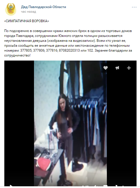 Полицейские просят всех, кто узнал девушку на видеозаписи, сообщить ее анкетные данные или местонахождение по телефонным номерам: 377805, 377806, 377816, 87082020313 или 102.