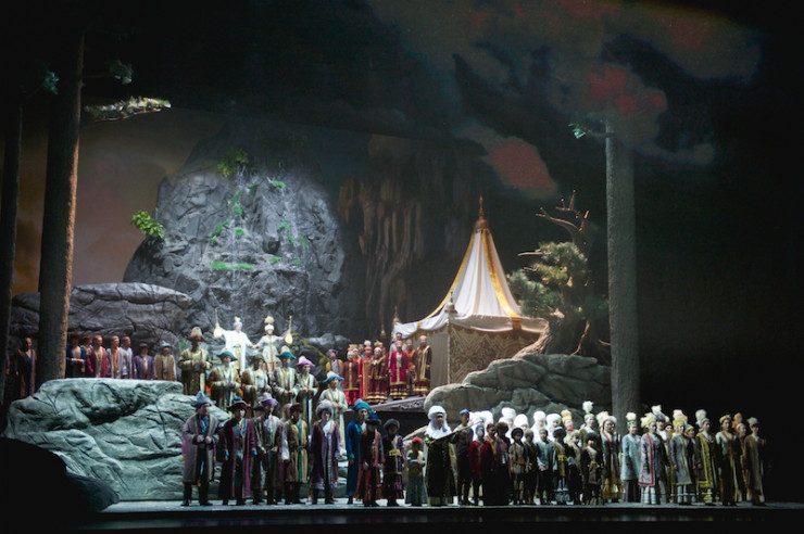 Уже первая картина ярмарки захватывает воображение зрителя: здесь талантливые народные умельцы, мастера-ремесленники, бойкие торговцы, беркутчи на коне и ловкие канатоходцы! Благодаря использованию 3D-технологий картины природы и быта оживают. Красочные костюмы заслуженных деятелей Казахстана Софьи Тасмагамбетовой и Павла Драгунова, видеопроекции итальянского мастера Серджио Металли, но главное – великолепная музыка, прекрасные голоса солистов и слаженное звучание оркестра и хора из года в год дарят публике незабываемые впечатления.