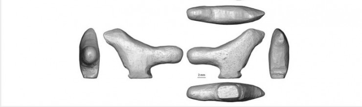 Трехмерная реконструкция с использованием микротомографии миниатюрной скульптуры птицы, обнаруженной в Линцзине © Francesco d'Errico and Luc Doyon