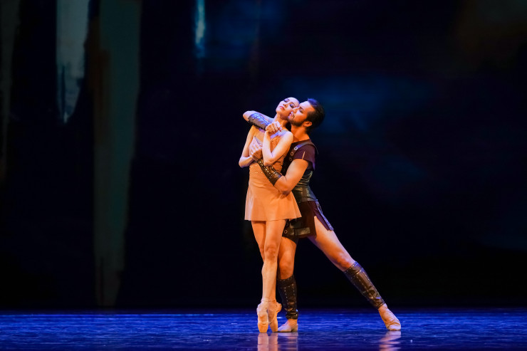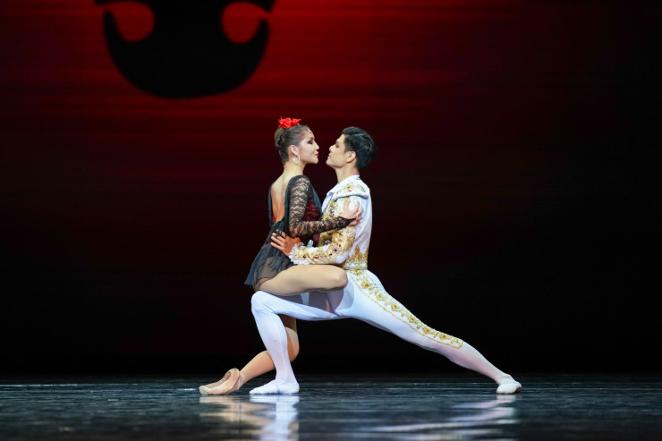 Другой премьерой вечера стал дуэт из балета "Спартак" А. Хачатуряна в хореографии Георгия Ковтуна. На сцену столичного театра фрагмент из спектакля перенес художественный руководитель "Астана Балет", заслуженный деятель РФ Нурлан Канетов. Спартака и Фригию воплотили Фархад Буриев и Айнур Абильгазина.