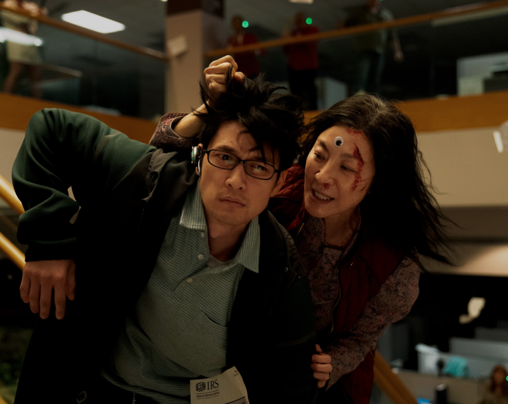 Первая, и наверное, самая заметная отсылка – это фильм "Матрица". Создатели, впрочем, этого и не скрывают. Основным источником для вдохновения был культовый фильм Ланы Вачовски об офисном клерке Нео (Киану Ривз), который становится Избранным. Эвелин также из простой владелицы прачечной и замученной женщины превращается в того героя, кто должен "спасти всю вселенную".