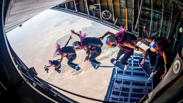 Что общего между скайдайвингом и скейтбордингом? Ищи ответ в проекте Летиции Буфони, которой удалось прокатиться в скейт-парке в самолете и прыгнуть с высоты 2750 метров вместе со скейтом и парашютом.
