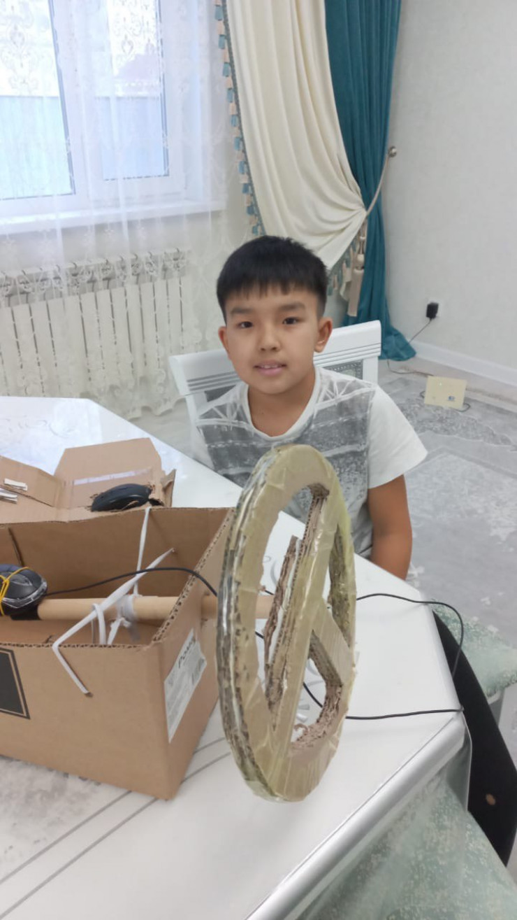 "Я по профессии учитель, сейчас в декрете с младшей дочкой, ей 11 месяцев. Самому старшему сыну 17 лет, далее идет Дияр, ему 11, есть еще одна дочка, ей 8 лет. На Новый год сестра с зятем подарили Дияру ноутбук, он очень хотел к нему игровой руль. Но я, увидев цены, поняла, что это нам пока не по карману. Поэтому отказала ему. Но он не расстроился, а решил придумать свой руль. У него очень хороший, легкий характер", - отмечает мама ребенка.