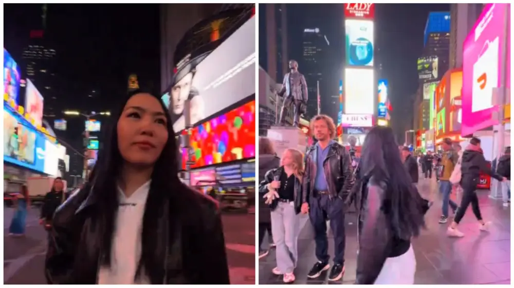 Енлик в видео поделилась впечатлениями от Таймс-Сквер: "Как Алтын Орда. Большие рекламные щиты".