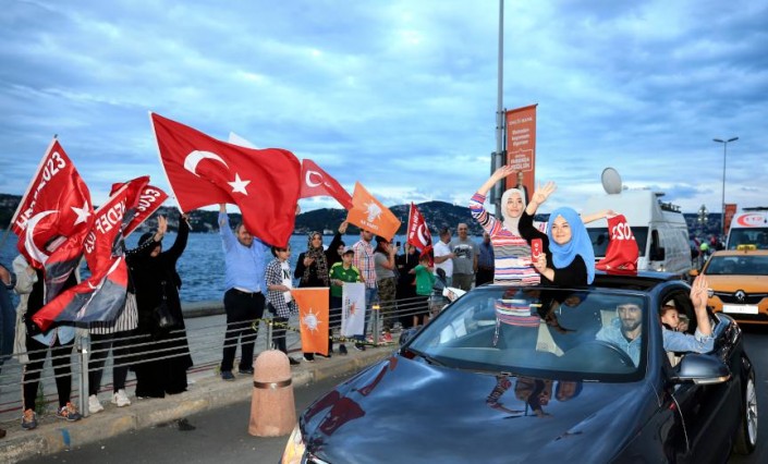 После оглашения первых результатов голосования на выборах президента и парламента Турции на улицах Стамбула начались празднования победы Реджепа Тайипа Эрдогана и возглавляемой им Партии справедливости и развития. Об этом сообщает "Анадолу".
