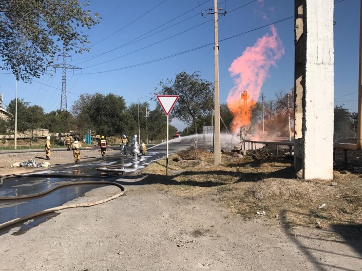 По данным пресс-службы, 30 августа в 16.34 по проспекту Тауке хана в городе Шымкент по неизвестной причине произошел разрыв подземного газопровода высокого давления диаметром 150 миллиметров, в результате чего произошло загорание трубопровода (высота пламени достигала 15 метров).