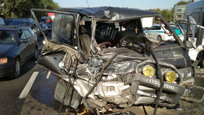 ДТП произошло на проспекте Рыскулова, между улицами Белинского и Розовая. Со слов очевидцев, Delica следовала в восточном направлении и вылетела на полосу встречного движения, где врезалась в Mercedes.
