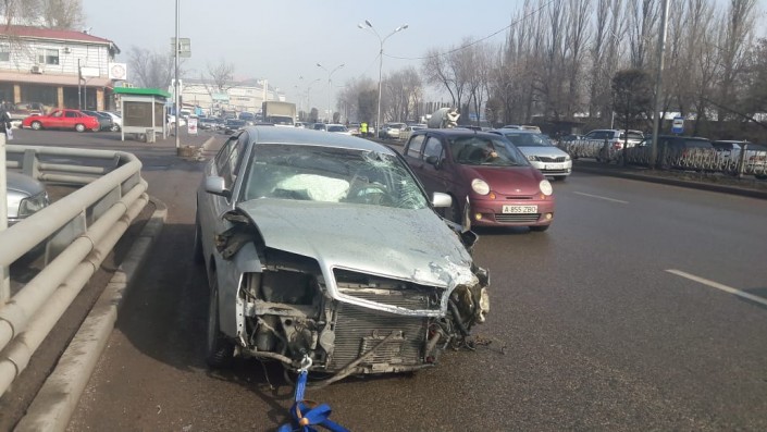 Еще одно серьезное ДТП произошло позднее, днем 16 февраля по Саина, не доезжая проспекта Рыскулова. Как рассказали очевидцы, водитель BMW, двигаясь в северном направлении, не справился с управлением и снес металлическое ограждение. Далее он вылетел на полосу встречного движения и столкнулся с Audi.