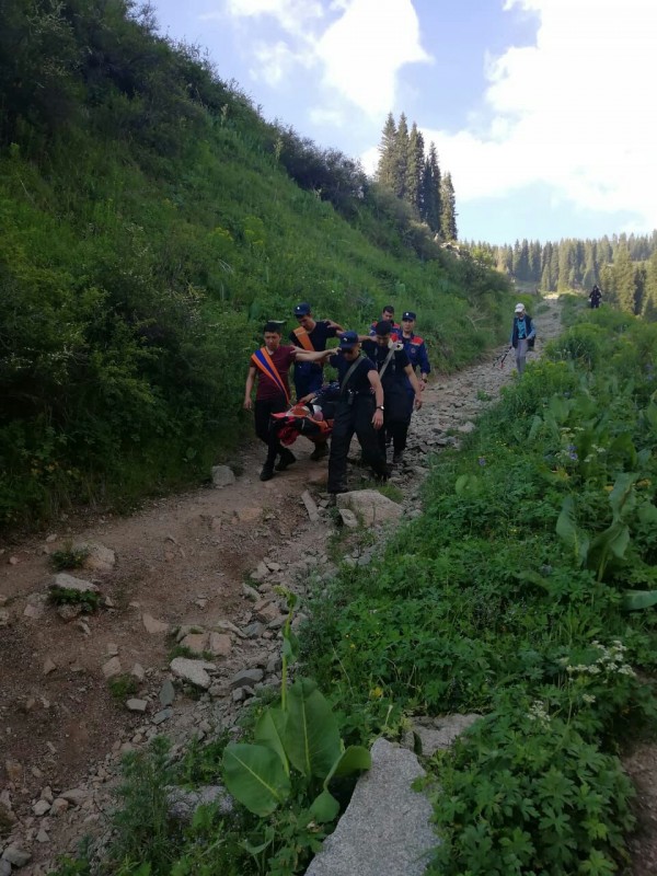 "В 15.53 оперативная группа Республиканского оперативно-спасательного отряда КЧС МВД РК в составе шести человек личного состава, автомобильной техники и кинологического расчета выехала на место происшествия. Информация передана по радиосвязи группе, которая находилась на рейде в ущелье Малом Алматинском на патрулировании реки Малая Алматинка, для совместного проведения транспортировки пострадавшей женщины. (...) После проведения спасательной операции по спуску пострадавшей, ее доставили к оперативной машине в ущелье Ким Асар и далее", - восстановили хронику событий в КЧС.