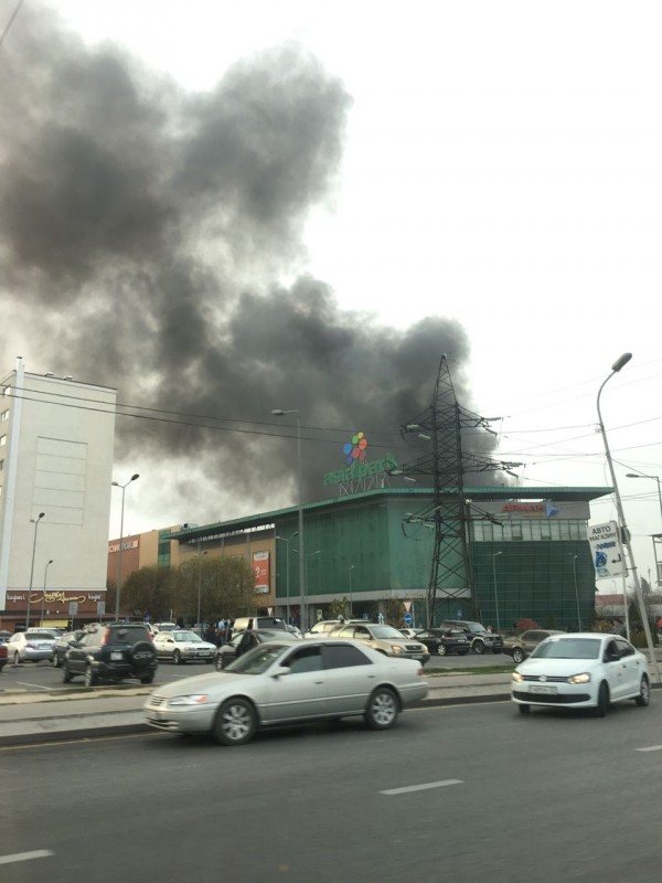 Густой черный дым заметили в воздухе напротив торгового центра "Азия Парк" (бывший "Прайм Плаза") в Алматы, передает Tengrinews.kz.