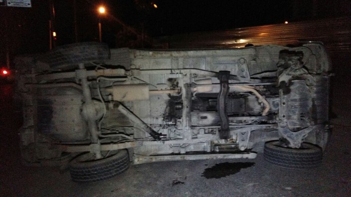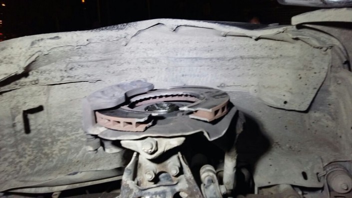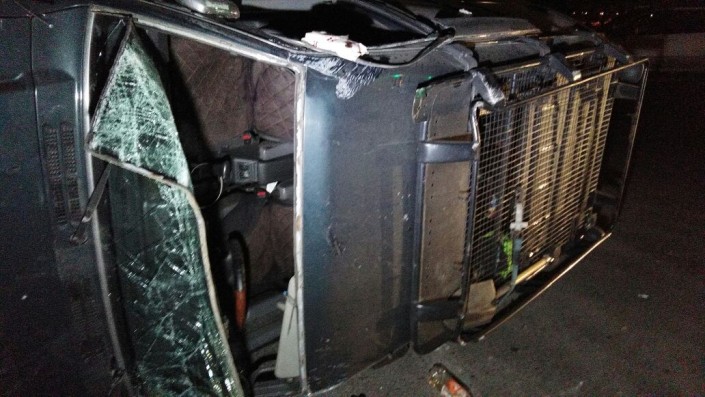 В результате столкновения автомобиль марки Mitsubishi Pajero пролетел 15 метров и опрокинулся на бок. У машины оторвало переднее колесо. К счастью, в результате ДТП никто не пострадал.