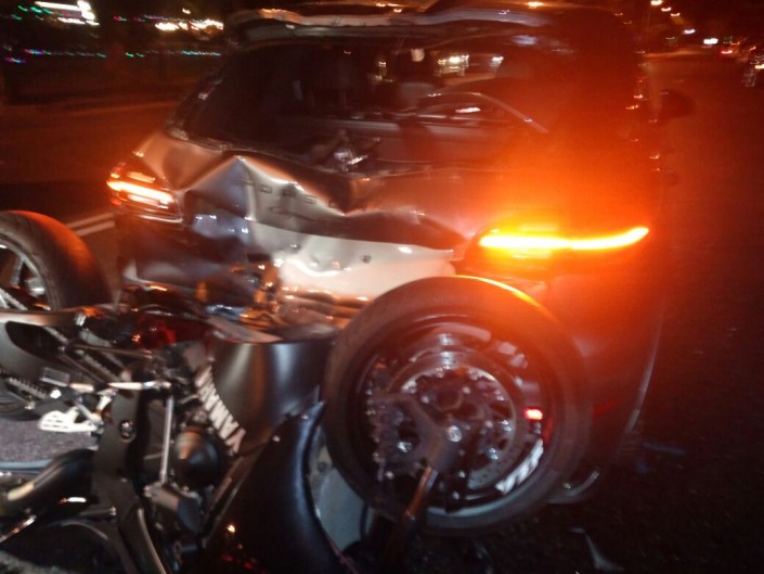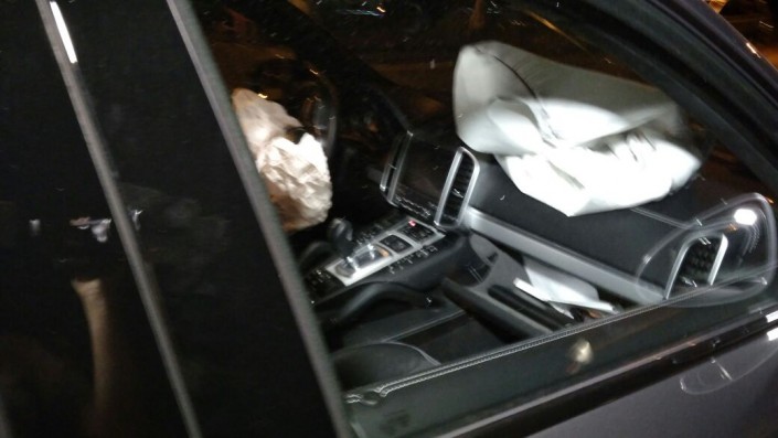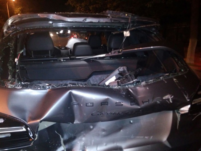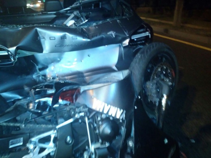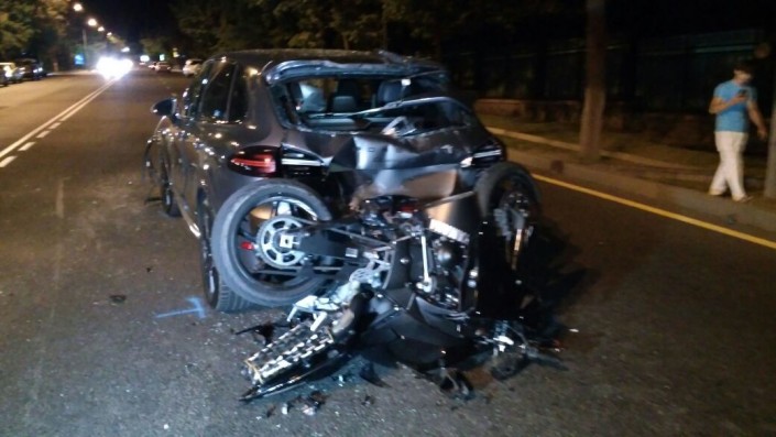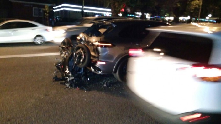 Водитель автомобиля Porsche Cayenne, не успев среагировать, ударил Toyota Camry, которая в этот момент пыталась то ли повернуть, то ли развернуться. От удара японскую иномарку развернуло и она задела следовавшую по дороге Mitsubishi Space Wagon. В это время в Cayenne въехал мотоциклист на Yamaha.