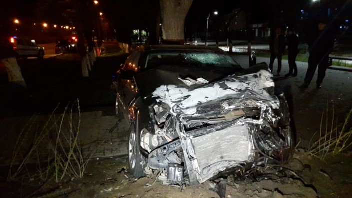 Со слов очевидцев, двигавшаяся в западном направлении по улице Толе би Audi ударила Mercedes, который проезжал на красный свет в северном направлении по улице Яссауи. От удара Mercedes откинуло, а Audi врезалась в дерево. Выяснением всех обстоятельств занимается полиция.