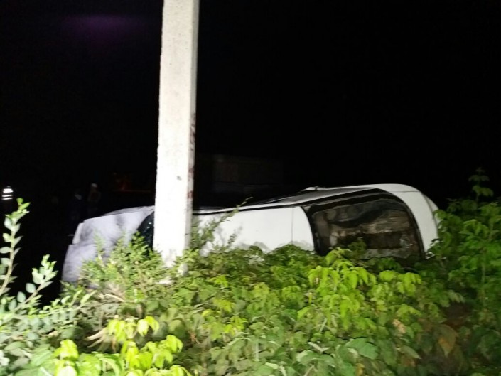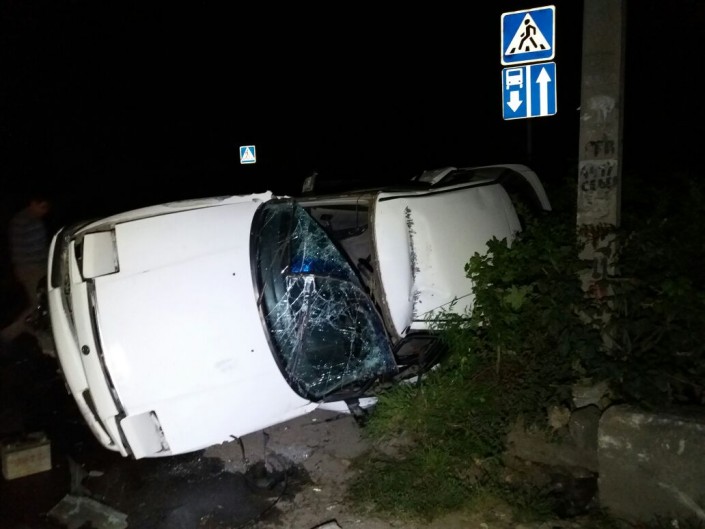 Авто опокинулось на бок в результате ДТП в Алматы, передает корреспондент программы "Территория происшествий" на телеканале СТВ.