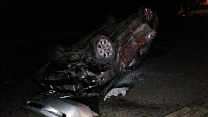 Авто перевернулось в ДТП с участием трех машин в центре Алматы Фото программы "Территория происшествий"