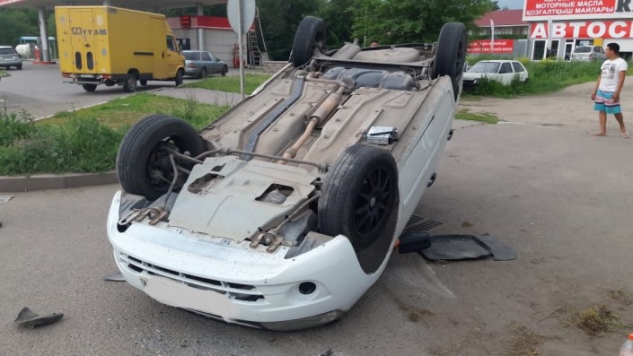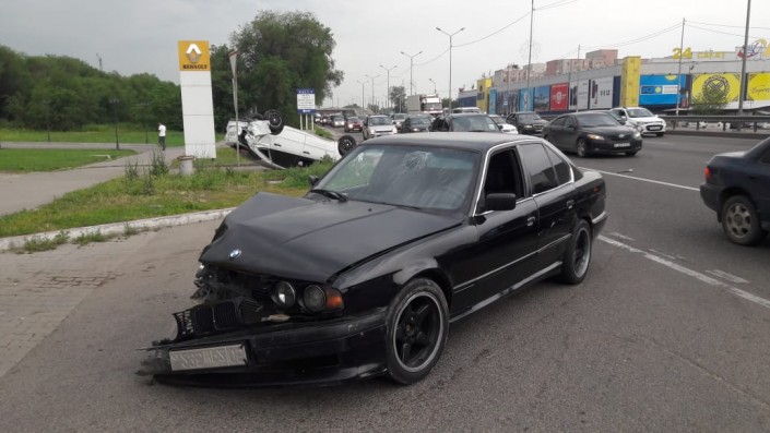 Авто перевернулось от удара BMW в Алматы Фото программы "Территория происшествий".