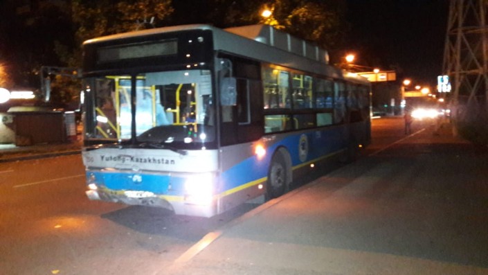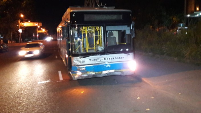 Авария произошла на пересечении улиц Манаса и Жандосова. Со слов очевидцев, автобус двигался по Манаса в южном направлении, а Toyota - по Жандосова на восток. На перекрестке автобус и легковой автомобиль столкнулись. Оба водителя утверждают, что двигались на разрешающий сигнал светофора.