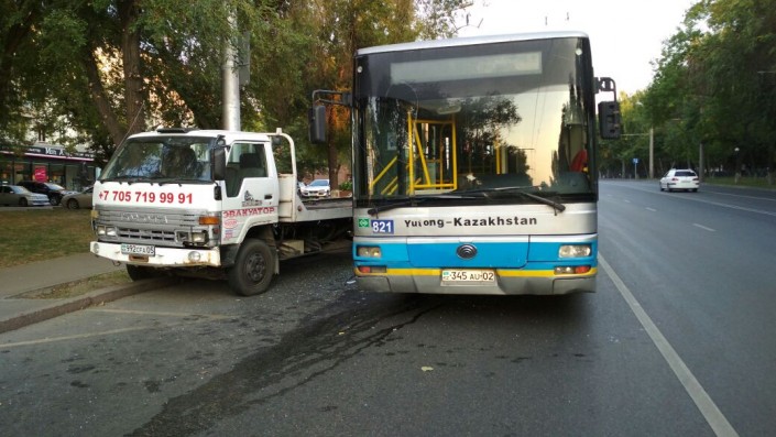 Со слов водителя автобуса 66 маршрута, он следовал по проспекту Алтынсарина в своей автобусной полосе. Эвакуатор стоял припаркованный, предположительно на автобусной полосе в небольшом "кармашке". Как рассказывает водитель автобуса, его начала подрезать машина, зажимать. Он начал уходить правее и из-за этого врезался. Автобус ударился дверью об борт эвакуатора и немного протащил машину.