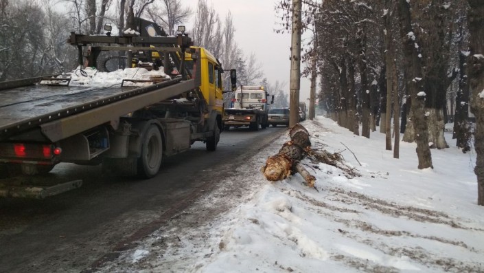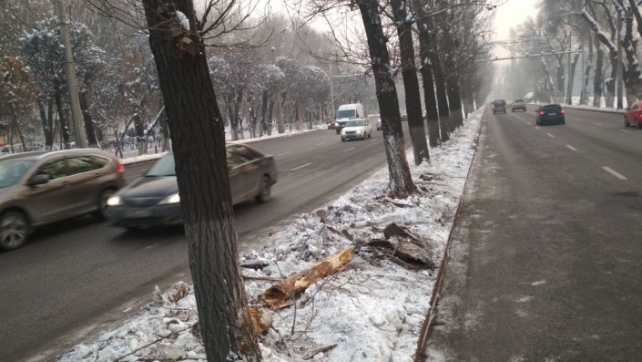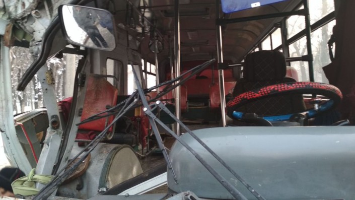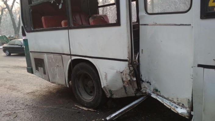 ДТП произошло по улице Суюнбая в южном направлении. Со слов водителя, его якобы подрезала неизвестная машина. Уходя от столкновения, водитель ушел левее, не справился с управлением, автобус перелетел через бордюр и врезался в деревья. Одно дерево было снесено автобусом.