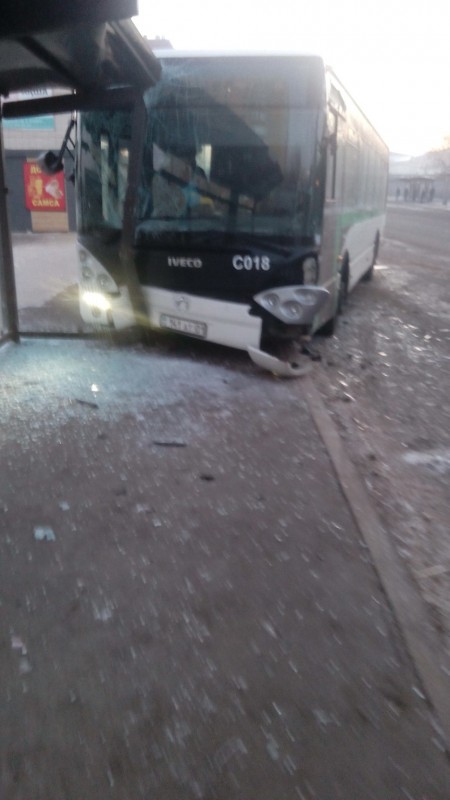 "18 декабря около 9.00 часов водитель маршрута № 26 при въезде на остановочный комплекс "Астаналык базар" допустил столкновение с маршрутным автобусом № 40. В результате ДТП в медицинское учреждение доставлены и после обследования и оказания медицинской помощи отпущены домой кондуктор автобуса 40-го маршрута и пассажир автобуса № 26", - сообщили в пресс-службе ДВД.
