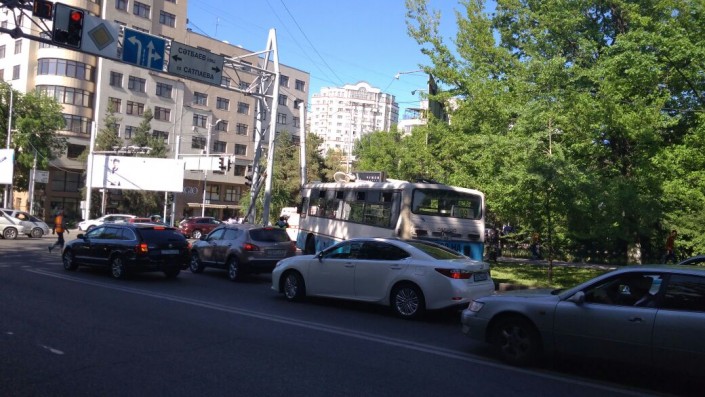 Как сообщает корреспондент, автобус 99 маршрута следовал по улице Достык в северном направлении. Перед улицей Сатпаева, по словам водителя, у него отказали тормоза.