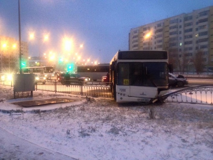 Автобус вылетел на обочину из-за столкновения с Audi в Астане, передает Tengrinews.kz со ссылкой на Управление административной полиции ДВД Астаны.