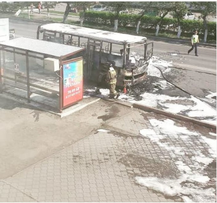 Маршрутный автобус загорелся на остановке в Петропавловске. В салоне находились 12 пассажиров, передает Tengrinews.kz.
